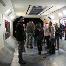 In this course, nineteen students from Interdisciplinary Visual Arts, 3D4M, Photomedia, and DXARTS are being challenged and inspired by exposure to a variety of resources, both on campus and off, including visits to the Kirsten Wind Tunnel in the University of Washington Aeronautical Laboratory, the University of Washington Center for Environmental Visualization, and the National Oceanic and Atmospheric Administration’s Western Regional Center at Sand Point. The nature of Cummins’ artwork has made her acutely aware of the many resources available locally, and she is happy to share these with students. In her roles as artist and faculty, Cummins continues to move at the speed of light.