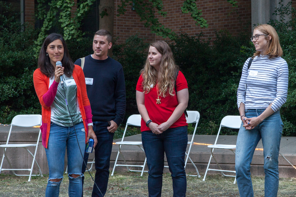 New graduate students started classes on Wednesday, September 27, and were welcomed to the School of Art + Art History + Design in an evening event that included: an exhibition reception for Material Performance: Second Year MFA in the Jacob Lawrence Gallery; self-introductions to a crowd of faculty, staff, and School Advisory Board members; a BBQ dinner; and a looping slideshow of work by or research images related to the new students.