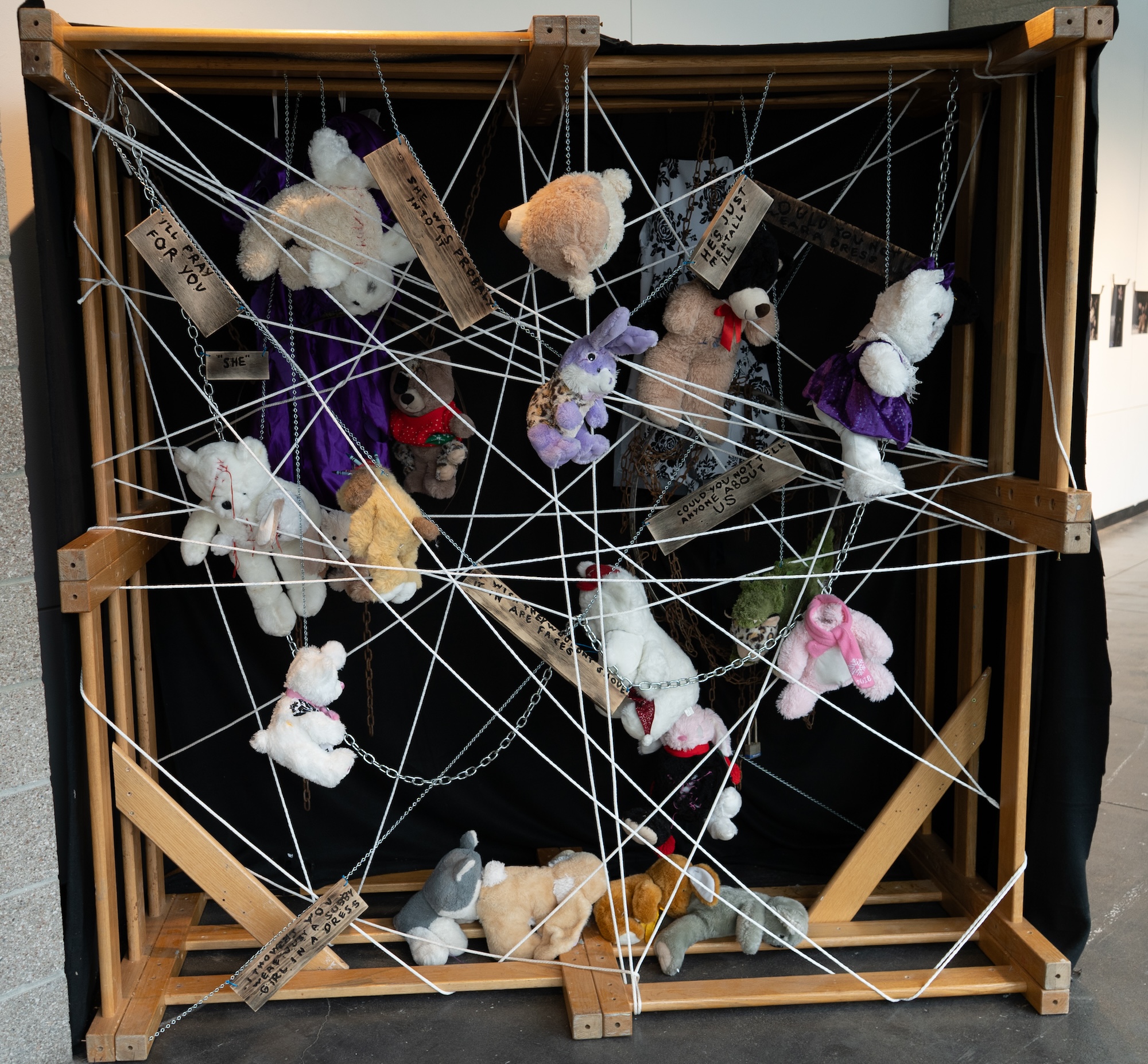 Thirdly, it is common that sexual assault victims are described as broken by themselves and others. Dehumanization faced by sexual assault victims can make them feel like they don’t have a purpose, as if others see them as objects rather than living, breathing human beings. She takes this idea by giving items that people often discard or look at as useless, such as animal bones and toys from places such as the Goodwill bins, a new purpose. Her goal is to inspire and comfort underprivileged people, as she believes in finding beauty in trauma, taking inspiration from the idea of kintsugi.