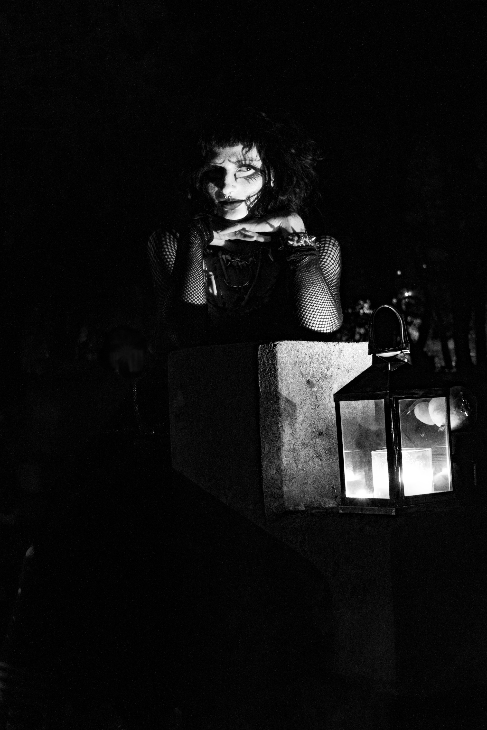 Methods she uses are practical effects such as SFX makeup and set design, wardrobe typically gothic-inspired, ranging anywhere from vampire to witch, and traditional photography methods such as lighting, staging, camera obscura, etc. She uses these methods to showcase how people view us as monsters while also highlighting gender identity and self-expression. Secondly is the prevalence of bullying that queer, neurodivergent, and alternative youths face from parents and peers, which can lead to a loss of childhood and an increased suicide rate. She showcases these concepts with the use of childhood items such as stuffed animals and toys that are commonly enjoyed by adults who were mistreated as children in my art by altering them into cute little monsters using sewing and other modification methods.