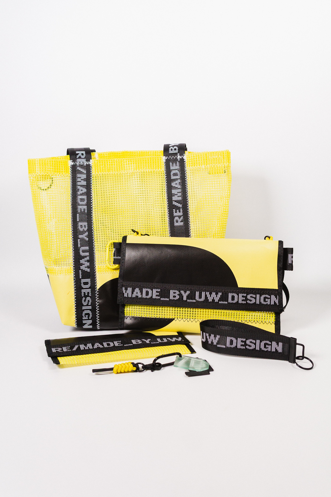 Remade by UW Design is a vibrant collection of handmade accessories—featuring a tote bag, side body bag, and pencil pouch—created by design students in collaboration with Professor Karen Cheng. Each piece blends function and personality, with bold colors, high-contrast vinyl, and layered textures that channel an energetic “urban summer” vibe. Matching keychains made from paracord, 3D prints, and laser-cut details add playful flair. Designed by designers for designers, this project celebrates individuality, hands-on craft, and the collective creativity of the UW Design program—turning everyday accessories into expressive, wearable statements.