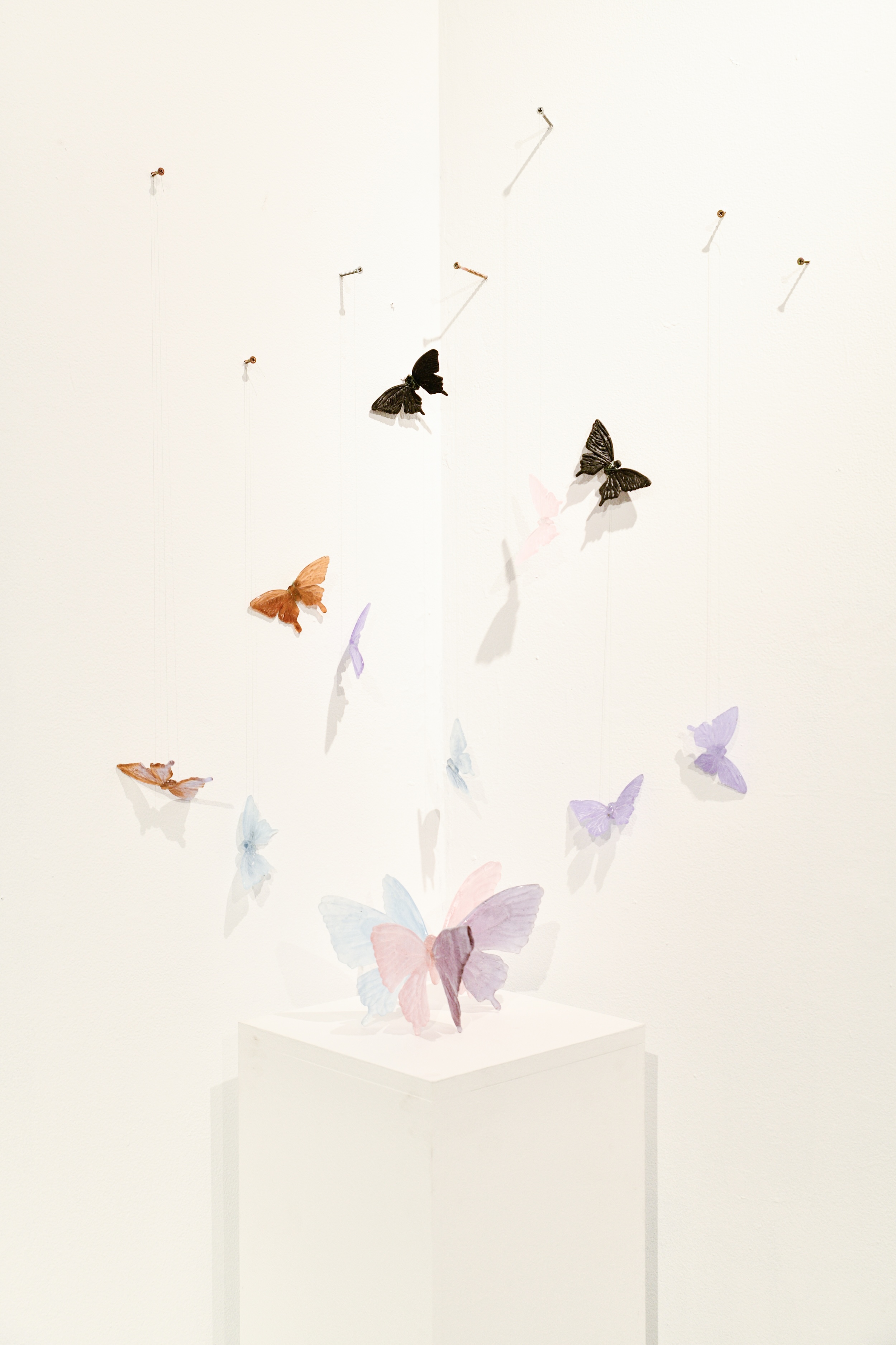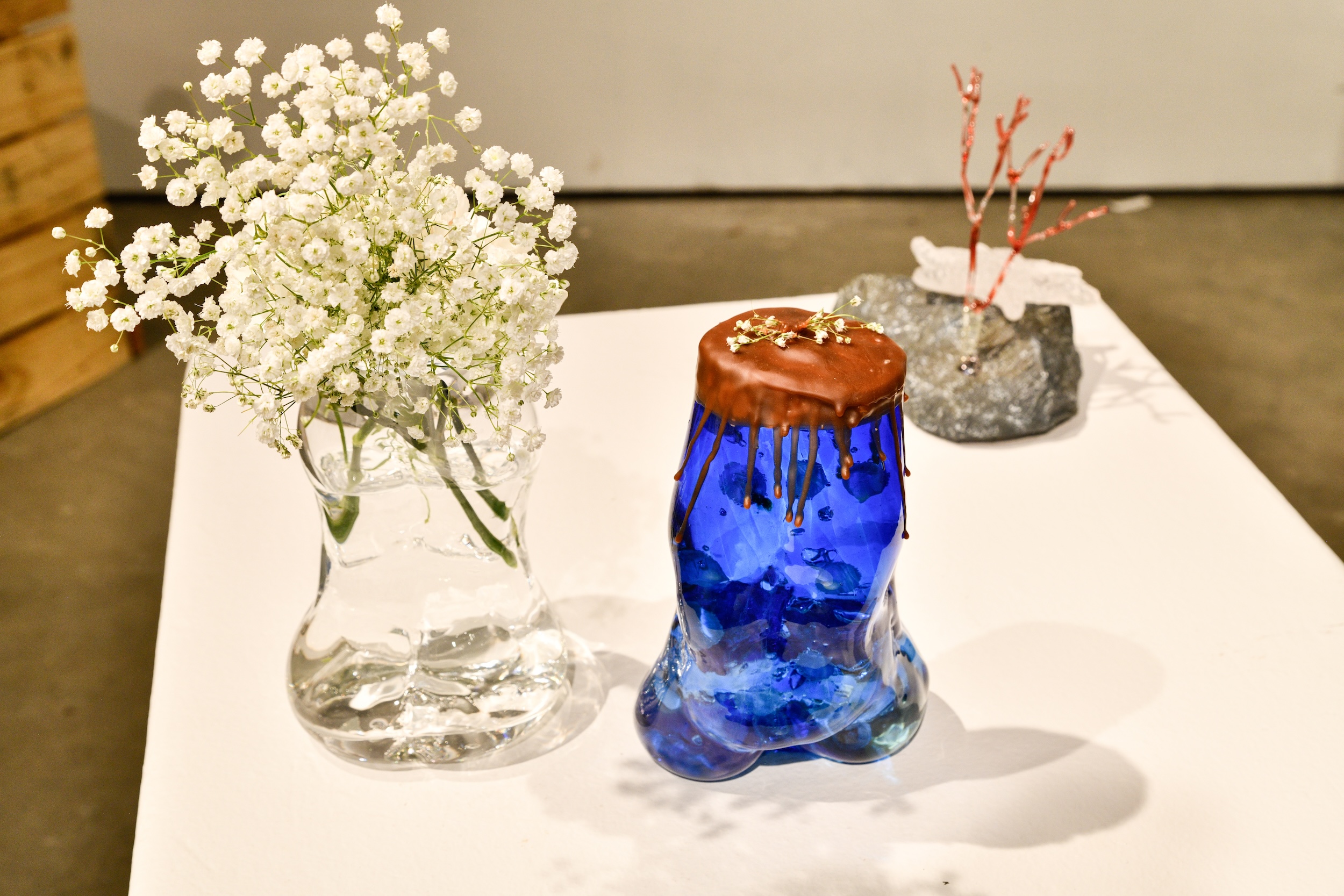 The artwork of 3D4M students working in glass, ranging from Glassblowing, Flame work, Casting, Fusing, and more. The work was documented during a show in the North Gallery in the Ceramic + Metal Arts Building (CMA).
